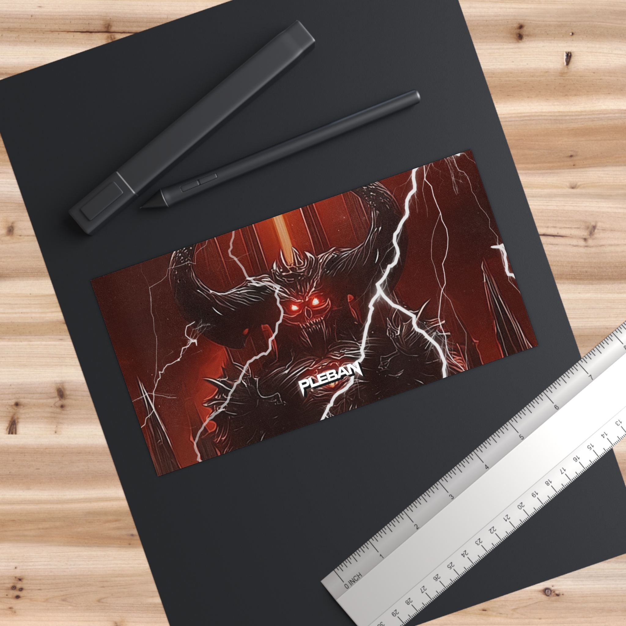 A bold, weatherproof bumper sticker that channels dark fantasy energy with lightning strikes and a horned, glowing-eyed guardian. The matte, UV-laminated vinyl keeps colors vivid while resisting sun and rain, so the stormy reds and inky blacks stay crisp on car bumpers, helmets, laptop lids, and toolboxes. It reads like a declaration—rugged, intense, and handcrafted for people who collect striking, moody art and want it to last through miles and elements.